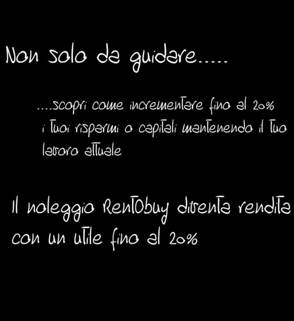 Oggi #RentObuy offre una mobilità noscoring, flessibile e su misura. Una formula che ti permette di guidare senza necessità di finanziarie ne banche dati, con tutto il necessario alla circolazione incluso, senza pensieri e con in più, unico on Italia, la scelta gratuita a scadenza tra: la proprietà al solo costo agenzia, il cambio auto all’infinito o la riconsegna con riaccredito cauzione. Più di solo noleggiare, meglio di un semplice acquisto, con tanti altri vantaggi.